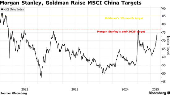 中国股市,尤其是科技股,在DeepSeek展示了人工智能进展后,突然重新受到青睐。本周早些时候,高盛集团将MSCI中国指数的目标上调至85点,而摩根大通和瑞银集团也发布了看涨观点。